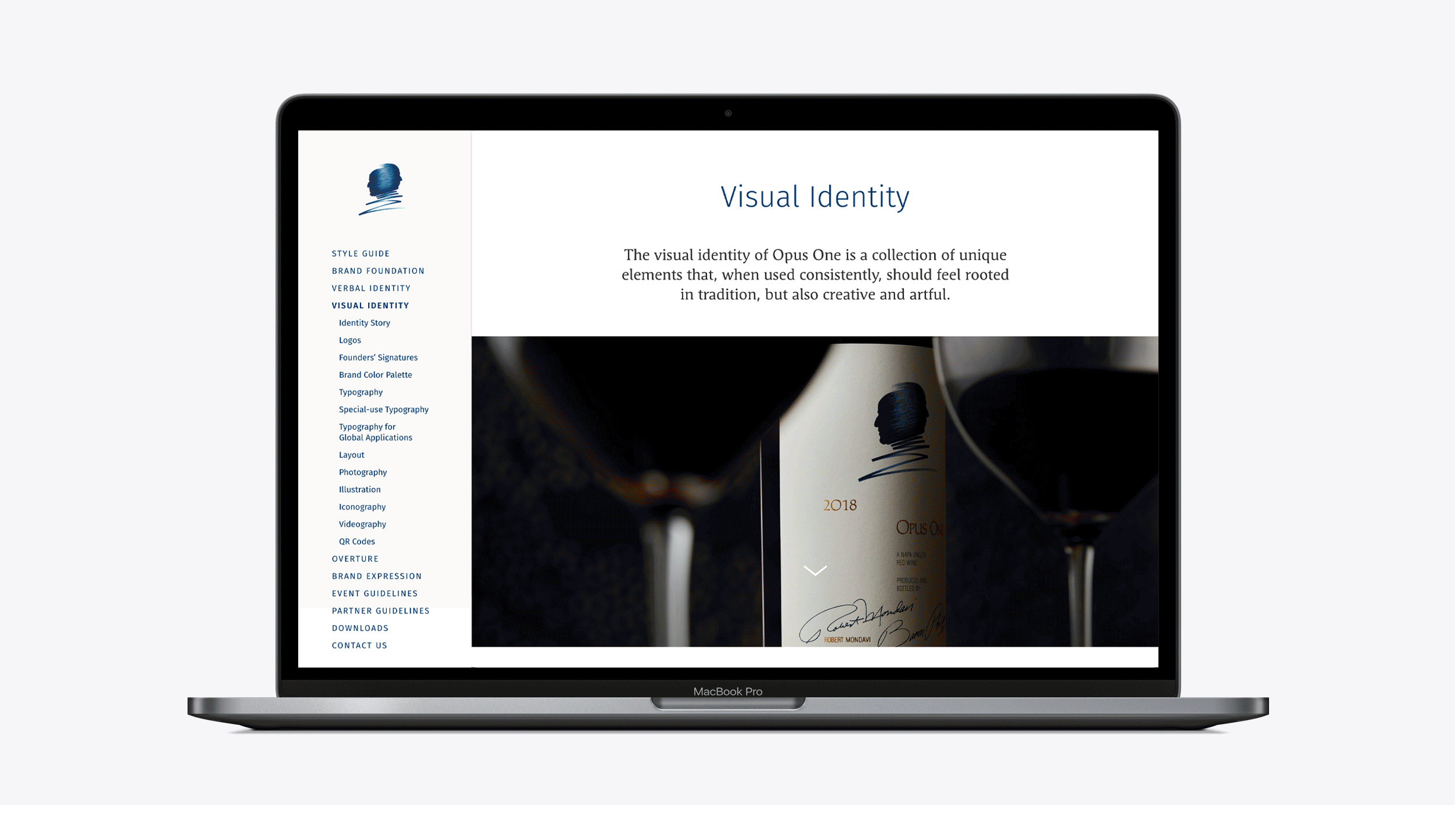 We used the styling of the consumer-facing Opus site as our main inspiration for the look and feel, and then built a straightforward framework to contain all the brand elements. We partnered with the team at Opus One to create and unify the brand story and assets.